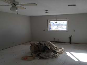 For house Ceilings in: Living Room, Kitchen, Hallway, Back Stairwell, Bathroom and Closets. Applied two coats Dulux Ultra Flat paint.